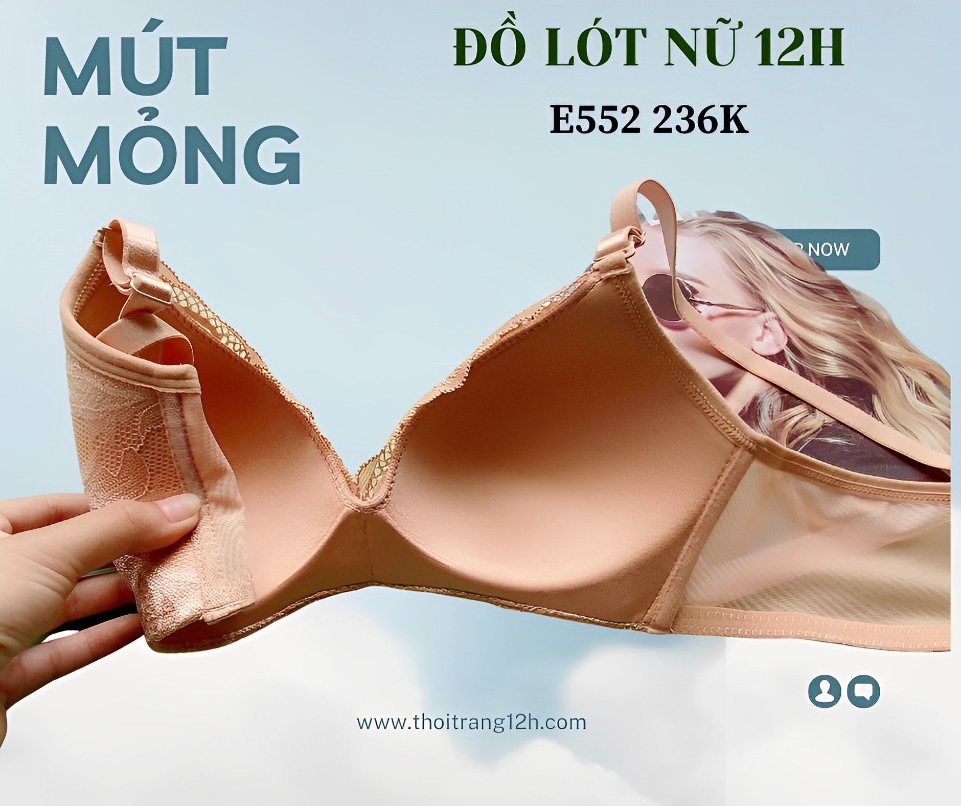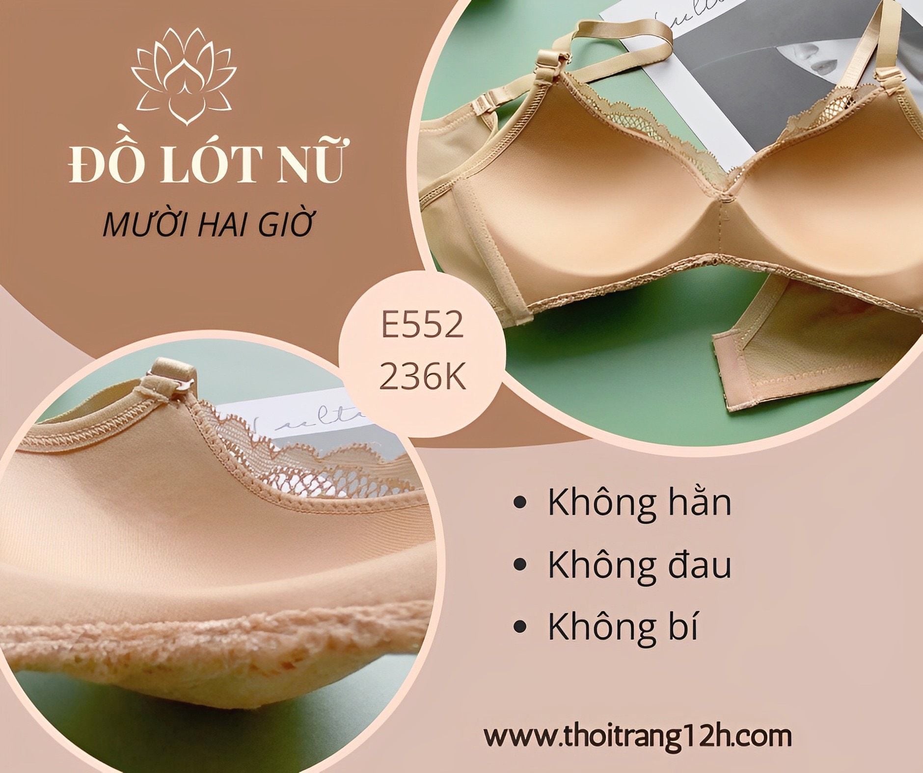 Áo Ngực Mút Mỏng Không Gọng Cao Cấp, Ren Mềm Mại E552-1, Đồ Lót 12H